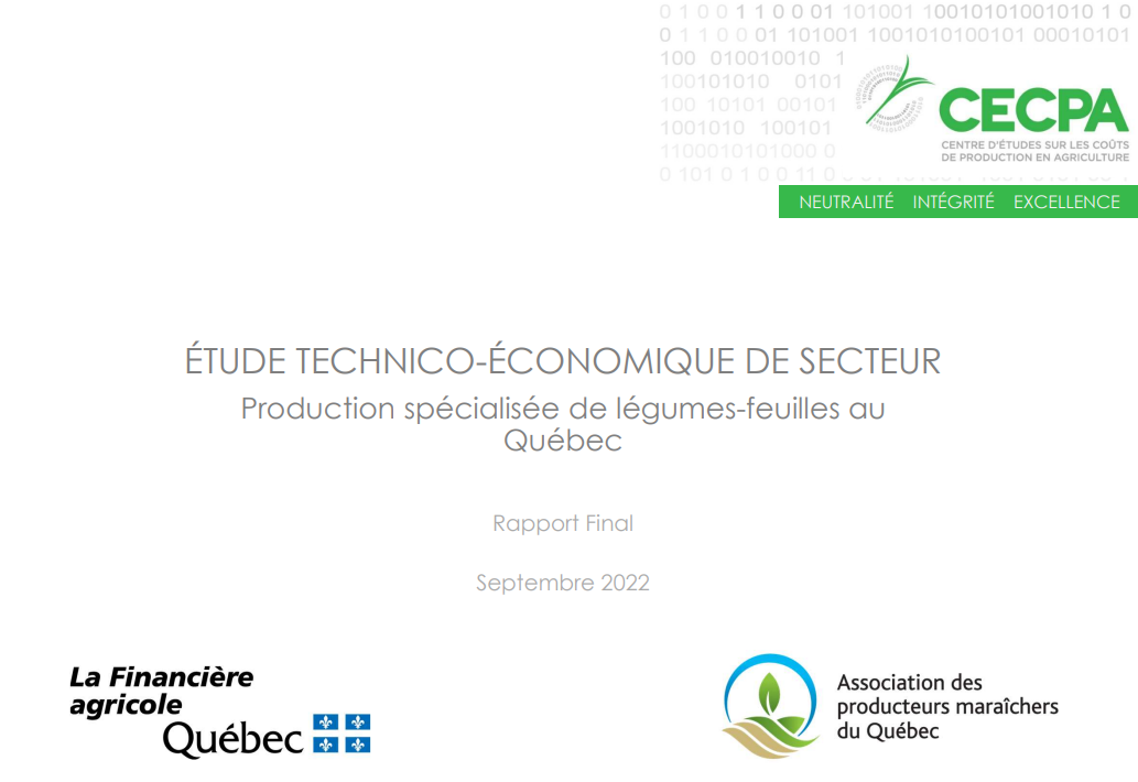 Étude technico-économique du secteur – Production spécialisée de légumes-feuilles au Québec -