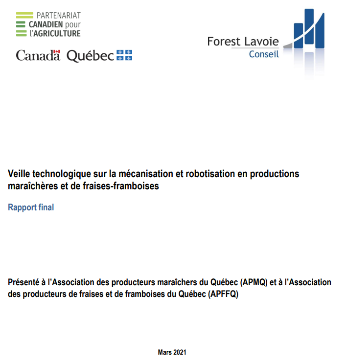 Veille technologique sur la mécanisation et robotisation en productions maraîchère et de fraises-framboises -